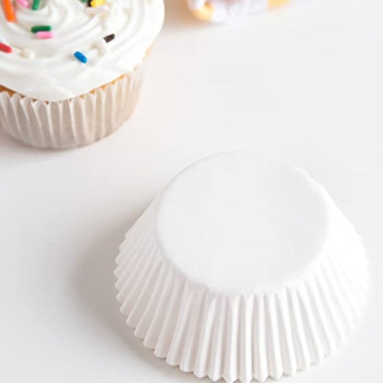 - Food-safe printed, fluted paper baking cups