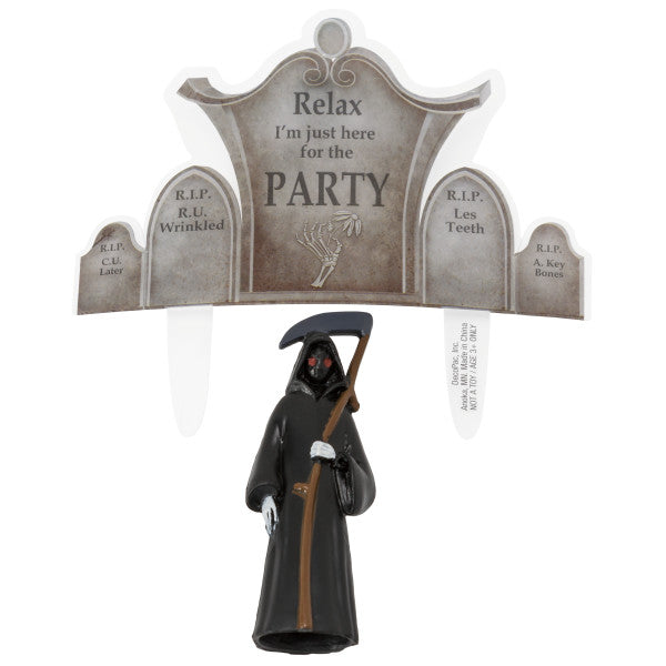 Don't fear the reaper - he's only here for the party! Celebrate an over-the-hill celebration with this DecoSet that features a grim reaper figurine and a gravestone plaque. 2-Piece set.