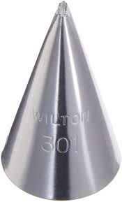 Round decorating tip no. 301 can be used for outlining, lettering, dots, balls, beads, string work, lattice and lacework